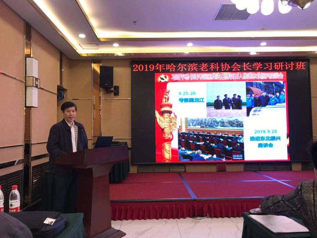 开班式由哈尔滨老科协副会长李桂英主持。出席研讨班学习的有哈尔滨老科协会长王莉、哈尔滨老科协秘书长田汝范、在哈大专院校、科研院所、大企业及九区九县的老科协会长和秘书长、市老科协各部门负责人等80余人。研讨班上我校副校长郭翔宇教授作了“贯彻落实习近平总书记重要讲话和重要指示,推进龙江全面振兴全方位振兴的专题辅导报告”;哈市工信局副局长张国华作了“精准发力,攻坚克难共同推动全市工业高质量发展”的专题报告。与会老科协会长和秘书长们围绕提升老科协工作能力与水平进行了研讨和交流;进一步明确做好老科协工作的目标和任务,增强光荣感和责任感,为省、市振兴发展做贡献。