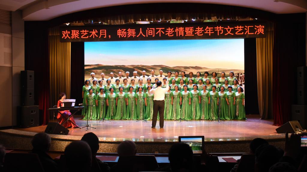 欢歌笑语庆重阳,载歌载舞颂党恩。10月25日上午,离退休人员工作处在图书馆会议厅举办以“欢聚艺术月,畅舞人间不老情”为主题的文艺汇演,共同庆祝即将到来的九九重阳老年节和老科技工作者日。校党委书记孙登林、党委副书记马宏坤、各部处处长、书记及退休老领导亲临演出现场,与离退休老同志们欢聚一堂,共同庆祝这一传统佳节。孙书记在演出开始前致辞,感谢老先生们对东农的发展建设做出的杰出贡献,称赞他们是学校的宝贵财富,并真诚地祝愿老同志们身体健康、快乐长寿、阖家幸福。离退休人员工作处枫韵文艺社团和东农老年大学的学员们经过数月的精心准备和辛苦的排练,为老年朋友们献上了一场文艺盛宴。