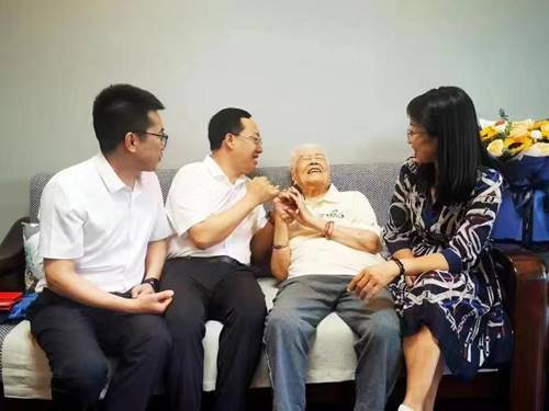 在我校教务处退休干部李淑云老师100岁寿辰来临之际,受学校党委委托,离退休工作处处长兼党委书记李荣军、动物科学技术学院正处级组织员栾松、教务处副处长马海鹍等一行来到李淑云老师家中,恭贺老人百岁寿辰。
