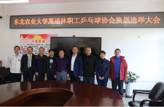 10月12日,东北农业大学离退休教职工乒乓球协会换届选举大会在爱地综合楼309会议室召开,全体乒乓球协会会员及离退休工作处处长兼党委书记李荣军、副处长李晴、活动管理科科长张帆应邀参会。会议由乒协总教练孟光主持。