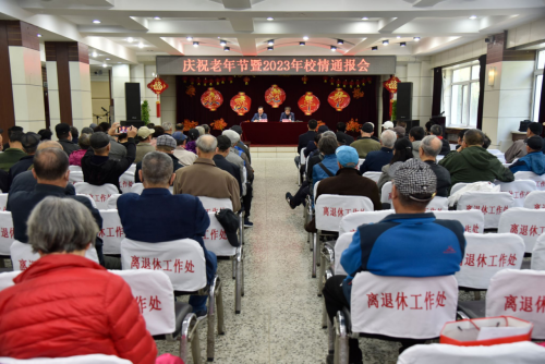 在重阳节来临之际,为弘扬中华民族尊老、敬老、爱老、助老的传统美德,营造欢乐祥和的节日氛围,10月23日,离退休工作处在二楼多功能厅举办了庆祝老年节暨2023年校情通报会。学校党委副书记贺景平出席活动。会议由离退休工作处处长兼党委书记李荣军主持。