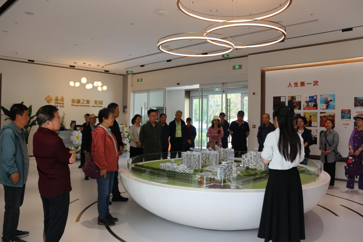 当天中午,党员们乘专车抵达位于龙园的泰康社区。在工作人员引导下,老同志们实地参观了精心打造的适老化样板间。从无障碍卫浴设施、智能安全监测系统到便捷的紧急呼叫装置,每一处细节都体现了“以长者为中心”的设计理念。明亮通透的居住环境、适老化的家具配置,让老同志们直观感受到科技赋能下安全、舒适的居住体验,纷纷驻足询问细节。