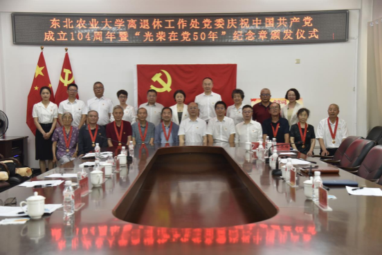6月30日上午,我校在离退休工作处309会议室举行庆祝中国共产党成立104周年暨“光荣在党50年”纪念章颁发仪式。校党委书记付强出席仪式,校党委副书记贺景平,组织部部长吴立全,离退休工作处班子成员、基层党支部书记等参加仪式。仪式由贺景平主持。