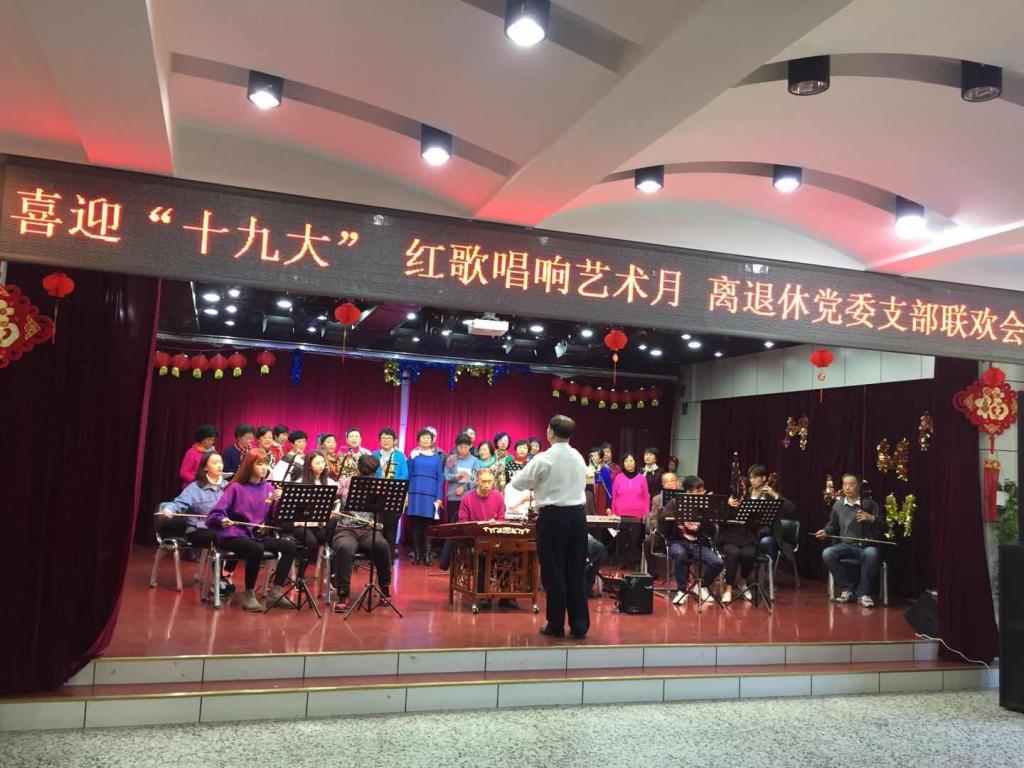 2017年10月12日上午,为迎接党的十九大召开和第五个“老年节”的到来,离退休人员工作处党委举行以“喜迎十九大,红歌唱响艺术月”为主题的支部联欢会活动,这也是离退休人员工作处开展首届艺术月系列活动之一。校党委副书记马宏坤到场致辞,将我校入选“双一流”大学和老校友陈徽凤捐资百万助学的好消息带给老党员们,感念陈老先生不忘母校、不忘初心的情义。在老年节即将到来之际,马书记深情祝愿老年朋友们节日快乐,身体健康、晚年幸福。离退休党委十六个党支部的党员和党外老同志们唱响一首首红歌,以无比激动的心情迎接党的十九大胜利召开。