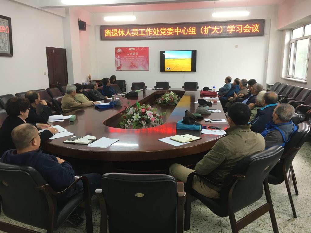 10月10日下午,离退休人员工作处党委在309会议室召开中心组(扩大)学习会议,党委书记万庆生同志主持会议,离退休处理论学习中心组成员、各党支部书记和全体科级干部参加会议。