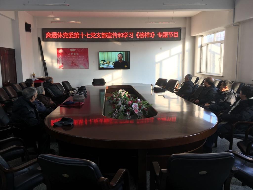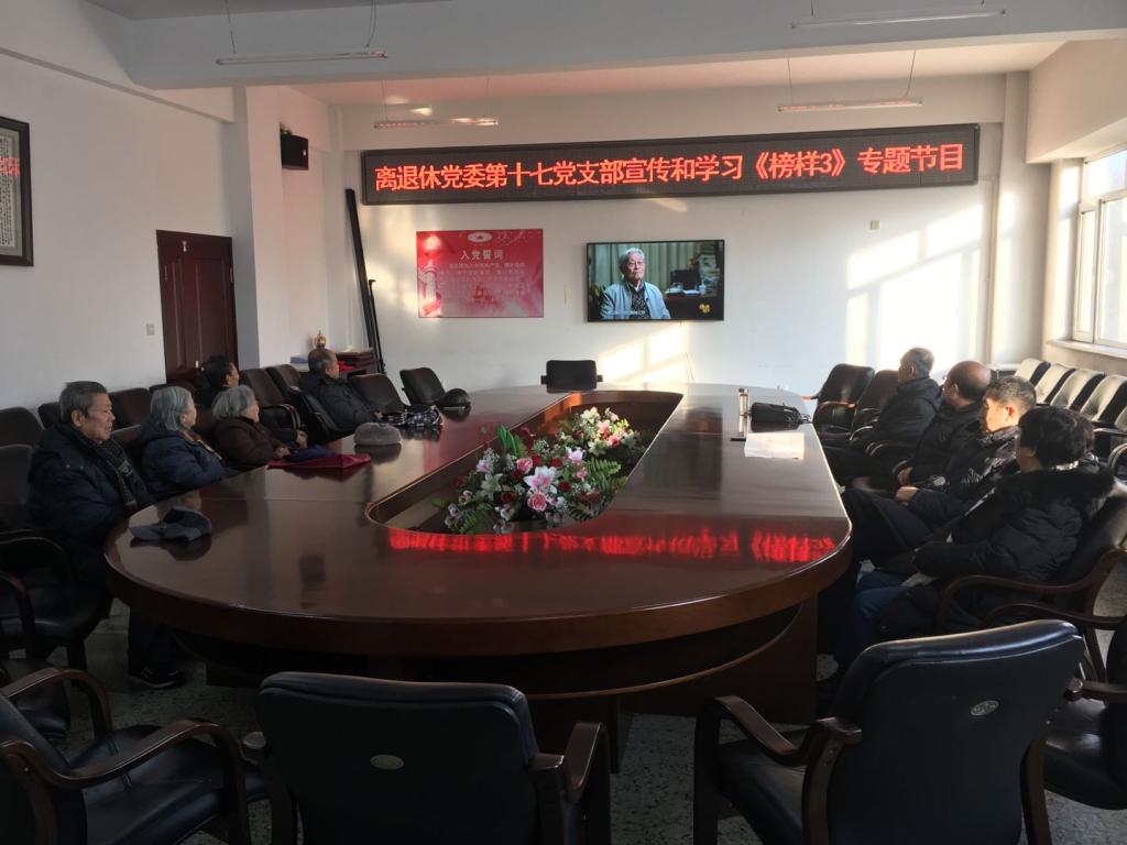 2018年12月14日上午8:30,离退休党委组织第十七党支部党员在309会议室宣传和学习《榜样3》专题节目,支部共有9名党员参加。