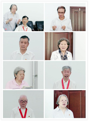 郑克响老师带病参加,随口不能言,但是用文字表达,由王燕老师代为宣读:“我身为老同志在共产党成立一百周年里我感谢共产党给我这么好的生活,时时刻刻想着我们老同志,感谢党对我的关爱,不忘初心时刻忠于共产党。”