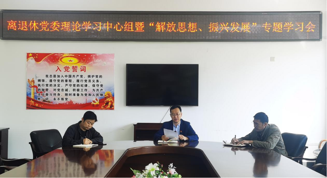 5月12日上午,在309会议室,离退休工作处党委组织召开了理论学习中心组暨“解放思想、振兴发展”专题学习会,离退休工作处党委委员、综合科同志参会,离退休工作处处长兼党委书记李荣军同志主持会议。