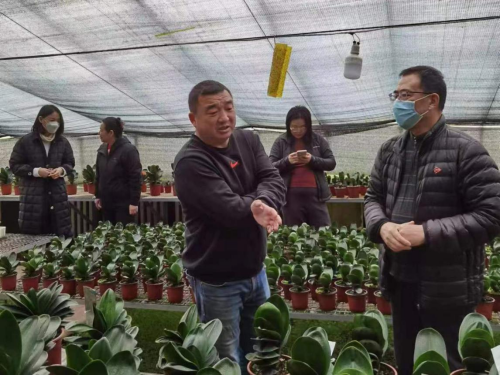 我校花卉专家在进行君子兰选种、大田栽培与管理技术指导及座谈交流