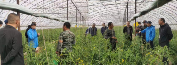 在园艺实验站番茄种植温室大棚,李景富教授从市场需求、品种形态、育种技术等方面向调研组详细介绍了正处于培育阶段的新型番茄性状特点。调研组详细询问了该新型番茄的育种目标、种植情况、施肥过程与采摘方式,了解了从品种选育到成果转化的培育全过程。李景富教授向调研组介绍了未来的科研规划,他表示,目前正在建立新品种番茄培育的七大体系,积极响应习近平总书记提出的种业振兴行动,在番茄领域上实现全面突破,打赢番茄种子战,攥紧种业“芯片”,端牢中国饭碗。